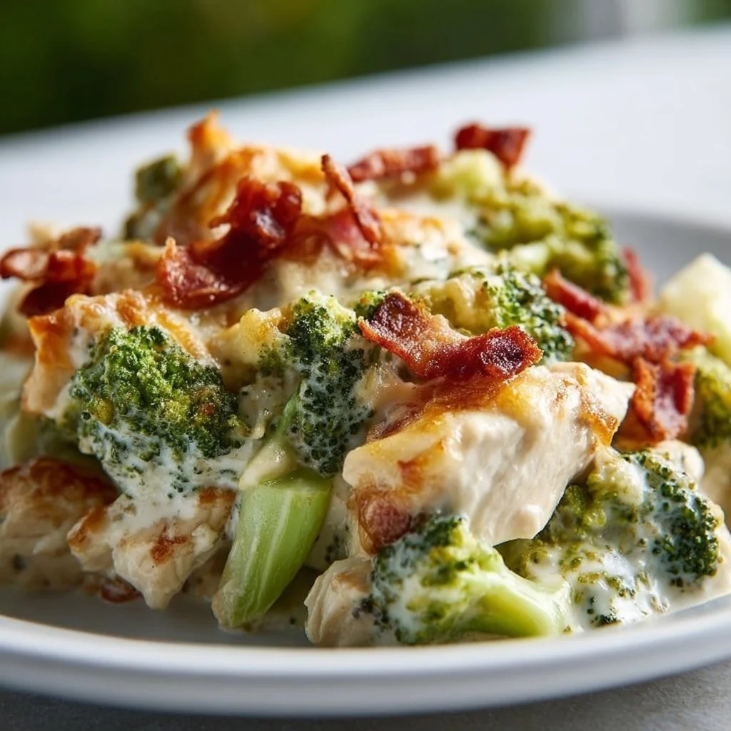 Creamy Low Carb Chicken Casserole with Broccoli and Bacon
